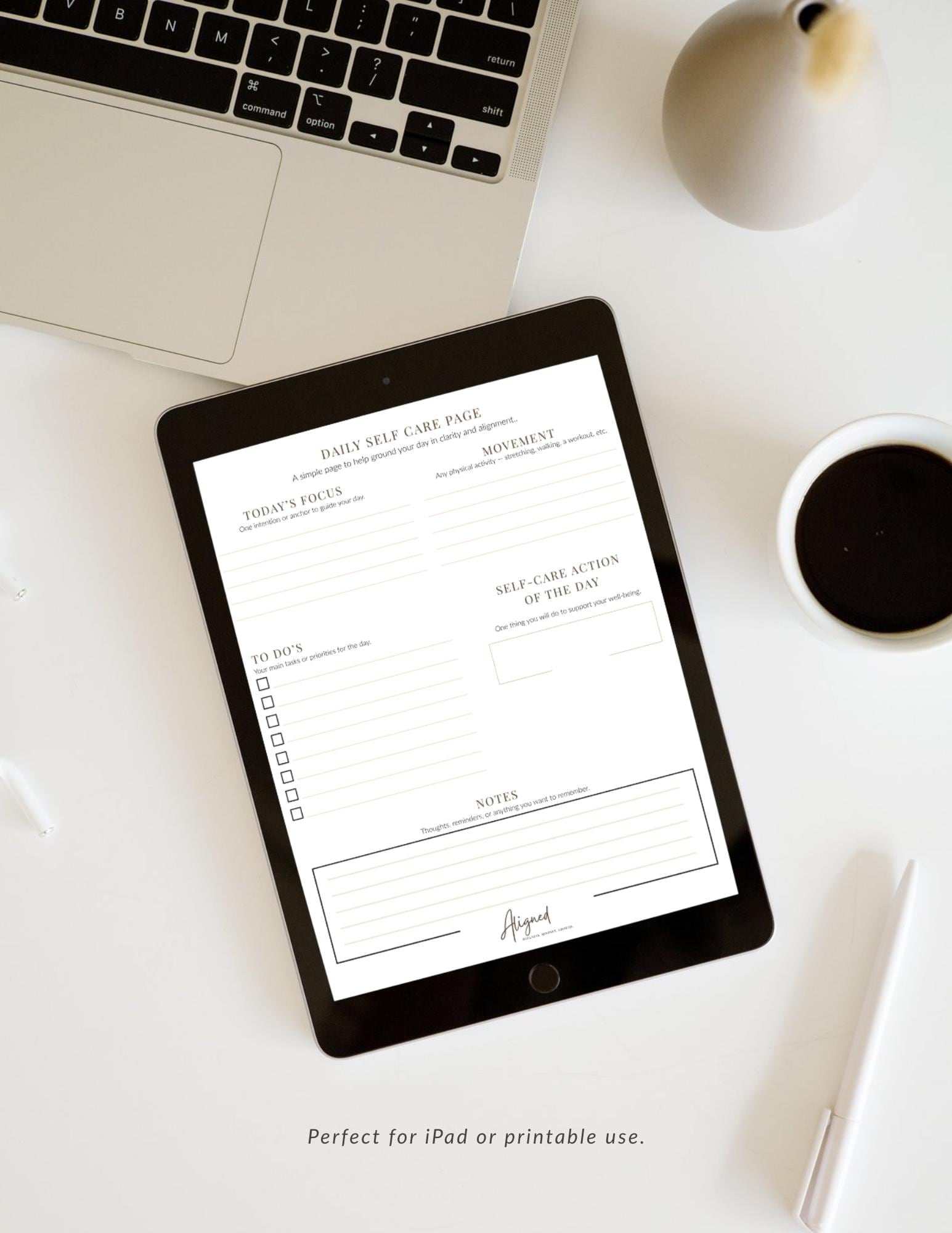• Daily Self-Care Page — focus, movement, to-dos, and self-care action