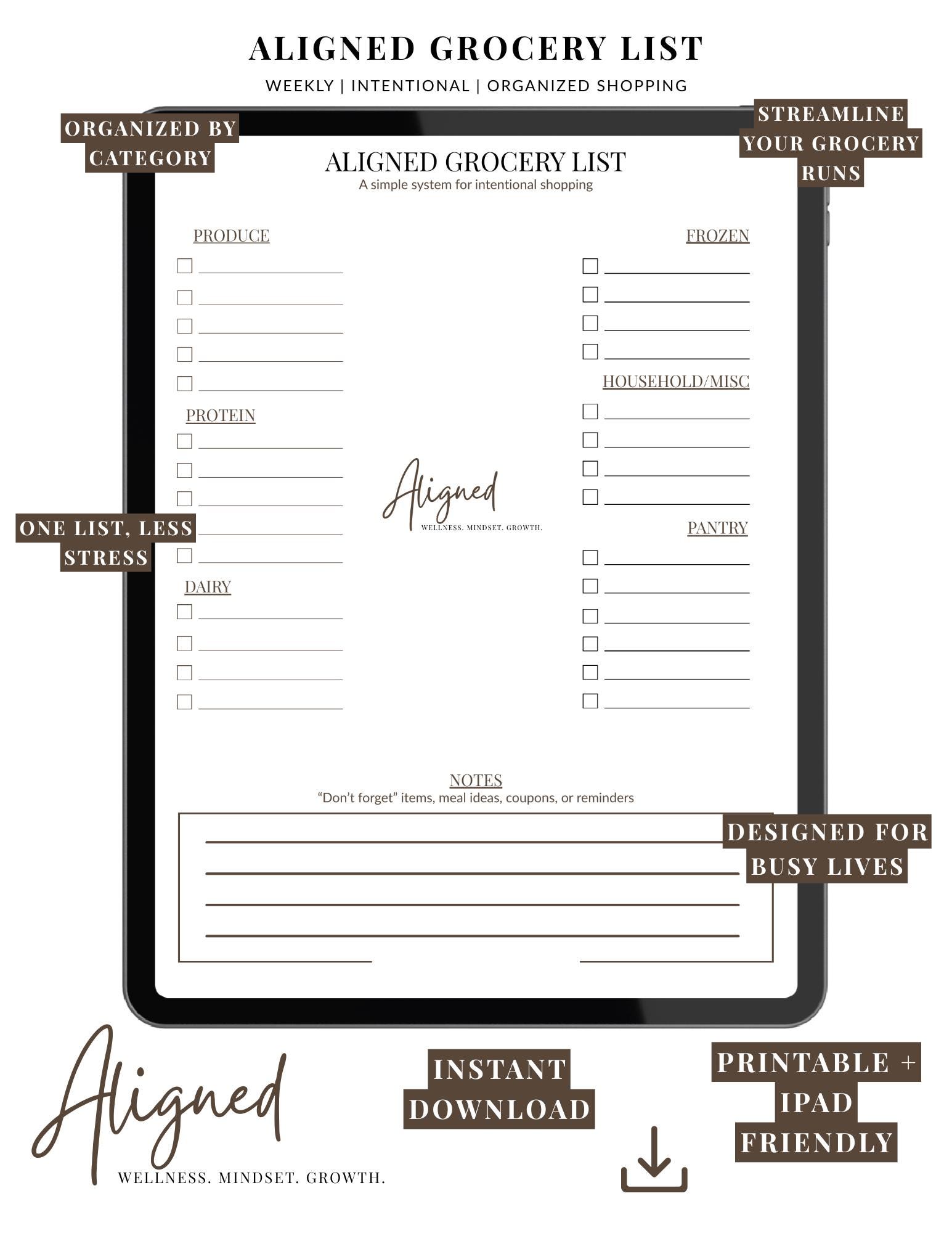 Simplify your grocery trips and shop with intention using the Aligned Grocery List — a clean, minimalist system designed to keep your shopping organized, efficient, and stress-free.